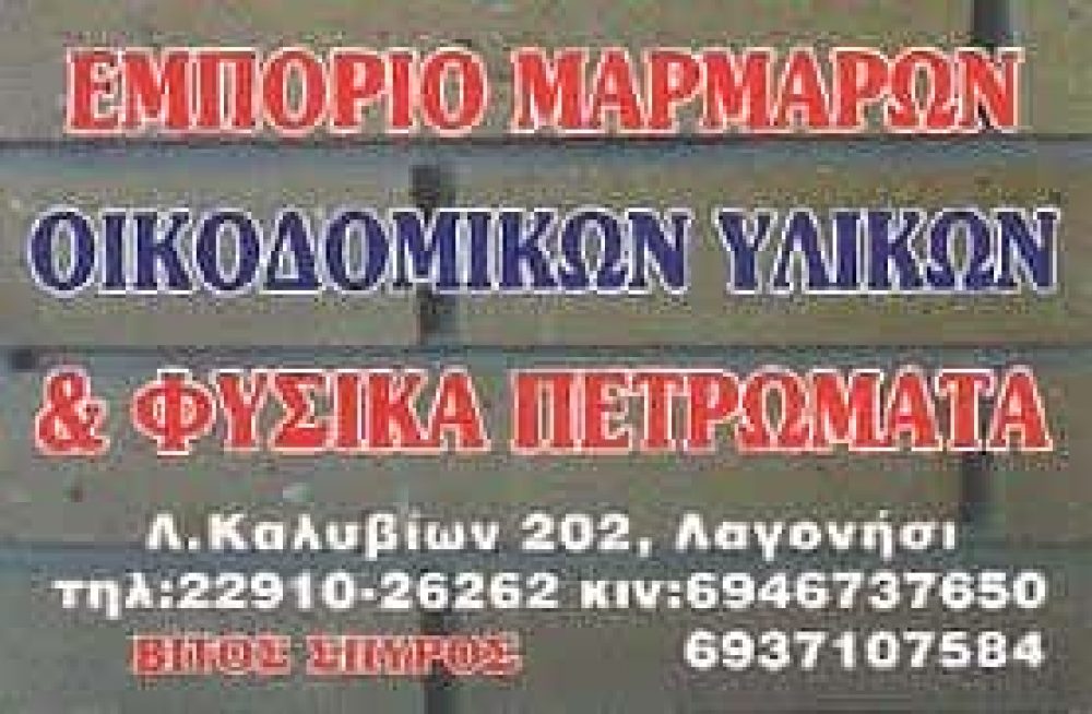 ΟΙΚΟΔΟΜΙΚΑ ΥΛΙΚΑ ΛΑΓΟΝΗΣΙ,ΦΥΣΙΚΑ ΠΕΤΡΩΜΑΤΑ ΛΑΓΟΝΗΣΙ,ΜΟΝΩΤΙΚΑ ΥΛΙΚΑ ΛΑΓΟΝΗΣΙ,ΑΔΡΑΝΗ ΥΛΙΚΑ ΛΑΓΟΝΗΣΙ,ΠΛΑΚΑΚΙΑ ΛΑΓΟΝΗΣΙ,ΟΙΚΟΔΟΜΙΚΑ ΕΡΓΑΛΕΙΑ ΛΑΓΟΝΗΣΙ