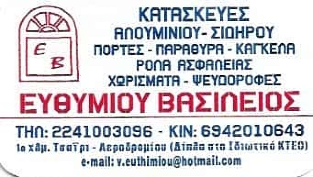 ΚΑΤΑΣΚΕΥΕΣ ΑΛΟΥΜΙΝΙΟΥ ΡΟΔΟΣ,ΚΟΥΦΩΜΑΤΑ ΡΟΔΟΣ,ΚΙΚΛΙΔΩΜΑΤΑ ΡΟΔΟΣ,ΠΟΡΤΕΣ-ΠΑΡΑΘΥΡΑ ΡΟΔΟΣ,ΡΟΛΑ ΑΣΦΑΛΕΙΑΣ ΡΟΔΟΣ,ΚΑΤΑΣΚΕΥΕΣ ΡΟΔΟΣ