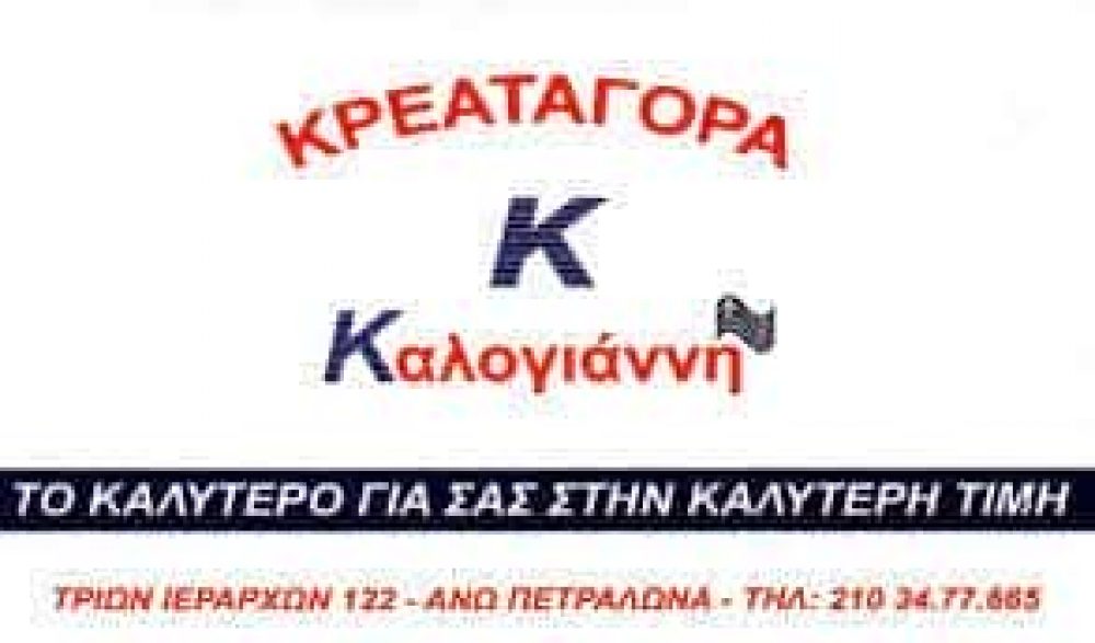 ΚΡΕΟΠΩΛΕΙΟ ΑΝΩ ΠΕΤΡΑΛΩΝΑ, ΚΡΕΑΤΑΓΟΡΑ ΚΑΛΟΓΙΑΝΝΗ ΑΝΩ ΠΕΤΡΑΛΩΝΑ, ΚΡΕΑΤΑ ΚΑΛΟΓΙΑΝΝΗ, ΕΜΠΟΡΙΟ ΚΡΕΑΤΩΝ, ΝΩΠΑ ΚΡΕΑΤΑ, ΝΤΟΠΙΑ ΚΡΕΑΤΑ, ΦΡΕΣΚΑ ΚΡΕΑΤΑ, ΕΛΛΗΝΙΚΑ ΚΡΕΑΤΑ, ΚΡΕΑΣ ΜΟΣΧΑΡΙΣΙΟ, ΚΡΕΑΣ ΧΟΙΡΙΝΟ, ΠΟΥΛΕΡΙΚΑ, ΝΩΠΑ ΚΟΤΟΠΟΥΛΑ, ΧΩΡΙΑΤΙΚΑ ΛΟΥΚΑΝΙΚΑ, ΚΕΜΠΑΠ, ΣΝΙΤΣΕΛ, ΑΡΝΙ, ΚΑΤΣΙΚΙ, ΜΟΣΧΑΡΙ, ΠΟΙΚΙΛΙΕΣ ΚΡΕΑΤΙΚΩΝ, ΚΡΕΑΤΟΣΚΕΥΑΣΜΑΤΑ, ΠΑΡΑΔΟΣΙΑΚΟ ΚΡΕΟΠΩΛΕΙΟ, ΠΑΡΑΔΟΣΙΑΚΑ ΠΡΟΙΟΝΤΑ, ΠΑΡΑΔΟΣΗ ΚΑΤ’ ΟΙΚΟΝ, ΔΙΑΝΟΜΕΣ ΚΡΕΑΤΩΝ ΚΑΤ’ ΟΙΚΟΝ, ΚΑΛΟΓΙΑΝΝΗΣ ΓΙΩΡΓΟΣ, DELIVERY ΚΡΕΟΠΩΛΕΙΟ, ΑΝΩ ΠΕΤΡΑΛΩΝΑ ΑΤΤΙΚΗΣ, ΝΟΜΟΣ ΑΤΤΙΚΗΣ Τ 2103477665, Αθήνα, ΑΤΤΙΚΗΣ