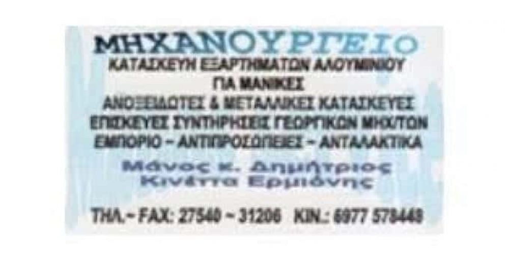 ΜΗΧΑΝΟΥΡΓΕΙΟ ΕΡΜΙΟΝΗ – ΣΥΝΕΡΓΕΙΟ ΓΕΩΡΓΙΚΩΝ ΜΗΧΑΝΗΜΑΤΩΝ ΕΡΜΙΟΝΗ – ΓΕΩΡΓΙΚΑ ΜΗΧΑΝΗΜΑΤΑ ΕΡΜΙΟΝΗ – ΕΠΙΣΚΕΥΗ ΓΕΩΡΓΙΚΩΝ ΜΗΧΑΝΗΜΑΤΩΝ ΕΡΜΙΟΝΗ – ΑΝΤΑΛΛΑΚΤΙΚΑ ΓΕΩΡΓΙΚΩΝ ΜΗΧΑΝΗΜΑΤΩΝ ΕΡΜΙΟΝΗ-ΚΑΤΑΣΚΕΥΗ ΕΞΑΡΤΗΜΑΤΩΝ ΑΛΟΥΜΙΝΙΟΥ ΓΙΑ ΜΑΝΙΚΕΣ ΕΡΜΙΟΝΗ